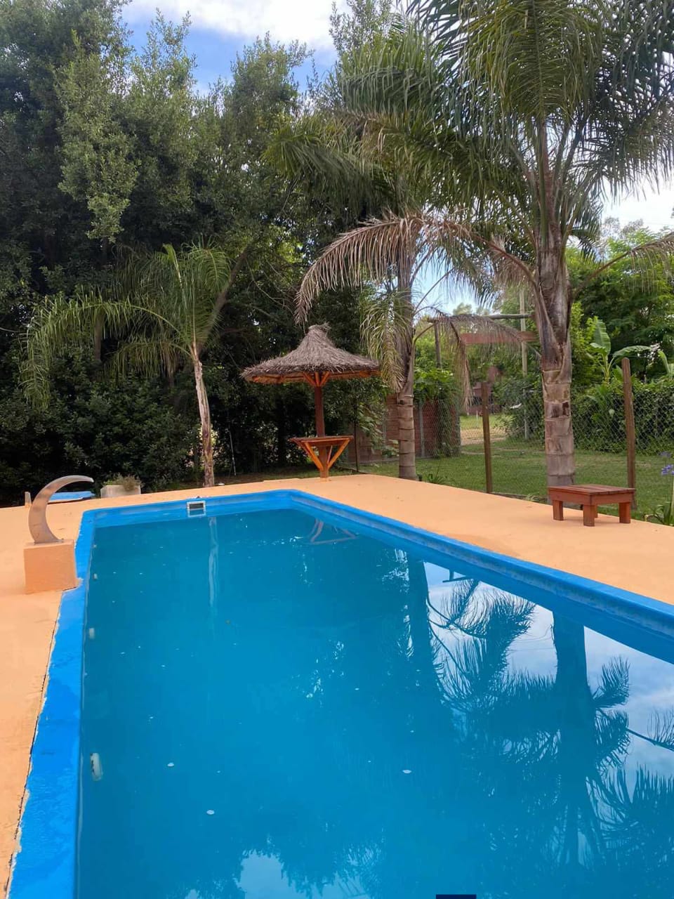 - Piscina de 10 x 4 con luces LED y cascada, totalmente cercada.